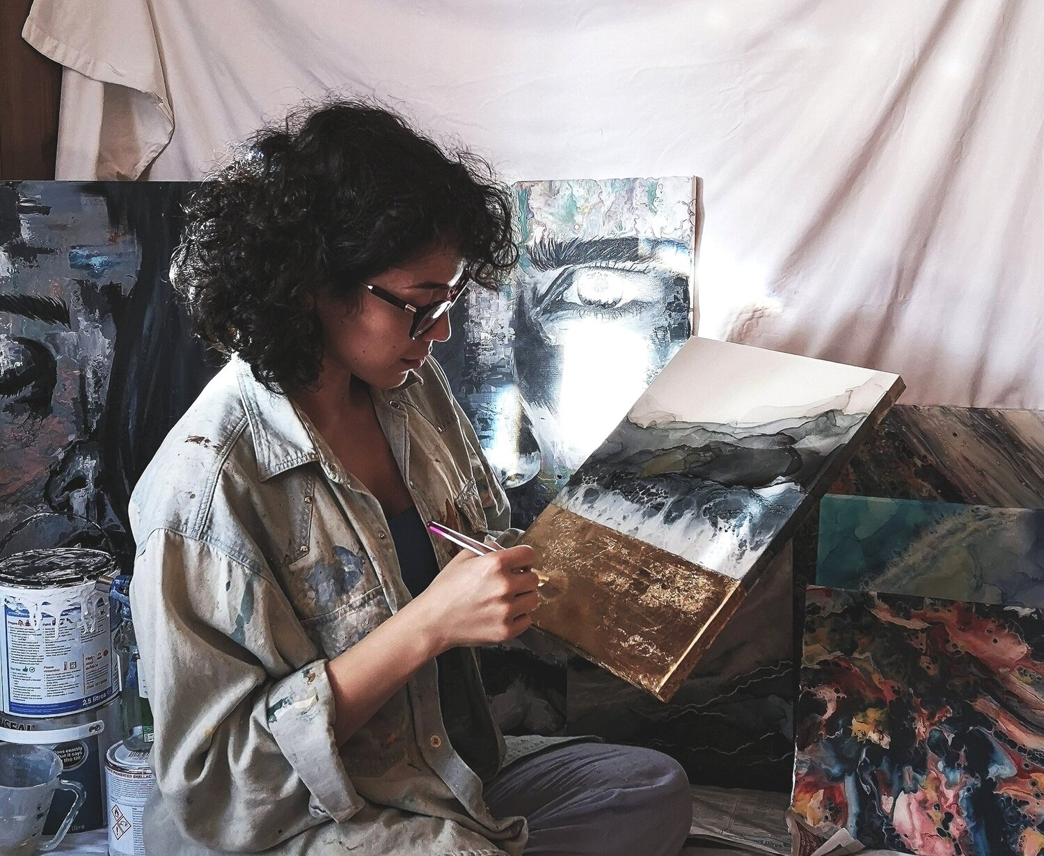 With a lifelong connection to art, the self-taught artist expresses a profound bond with emotions and senses. Despite encountering challenges and veering away during traumatic phases, these experiences became pivotal in rediscovering their artistic roots. Art, serving as a therapeutic avenue, facilitates a profound self-connection that surpasses verbal communication. Their creations act as a direct reflection of the psychological journey, encapsulating the intricate mental processes and emotions. Focused on two main themes—mental health and women's empowerment—their pieces skillfully intertwine fragility and robust mental states, creating a poignant narrative. The chosen colour palette contributes to portraying a delicate strength emanating from a deeply spiritual exploration. In essence, the artist's work becomes a powerful medium for healing wounds and a visually captivating manifestation of inner strength against negative mental forces.