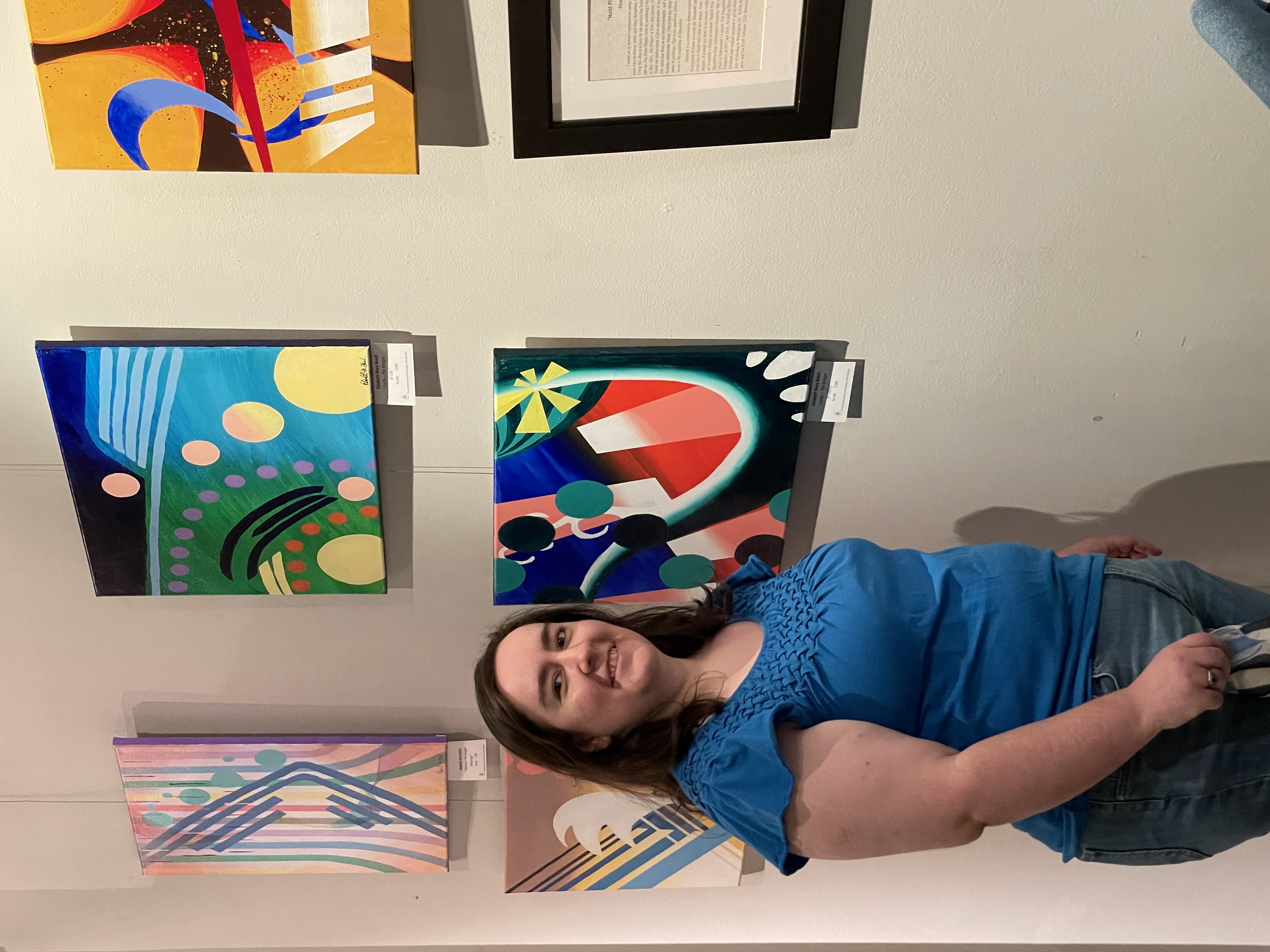 Elizabeth makes abstract expressionist work and realist work from Herndon, Virginia. She applies her background of music to create art. Elizabeth takes a song and transfers the sounds of different instruments and tones into a visual with color and shapes. Each song she listens to creates a unique image, and with the immense amount of content out there in the music world, her options of ideas and concepts are also immense. She also uses the same idea but a different process for her monotype prints. The process still has the idea of the music determining color and shape but involves a subtractive method. She does this applying paint to an acrylic plate laying it out in a way that is influenced by the music and spreading it across the plate. Afterwards she carves the paint away to create shape and line. In addition, Elizabeth does still life work when it comes to realism, she creates work based off what she views in life and what is around her. Her still lives have been thought as photographs but are truly drawings created from observation.