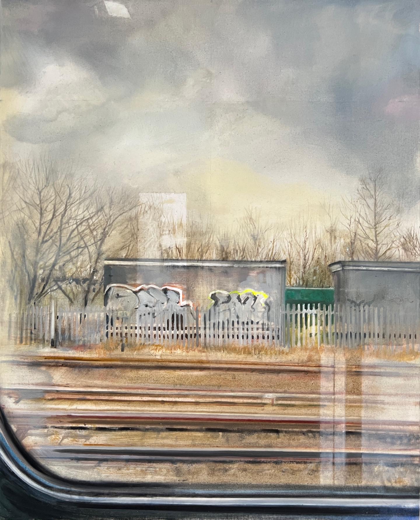 Back in London some years later Georgia had a sell out show of London landscapes at an art fair in Islington. Georgia is interested in the unremarkable subject matter, exploring elements often overlooked within the urban landscape. Her subjects are selected from photographs and remembered locations are often referenced as subject and influence.