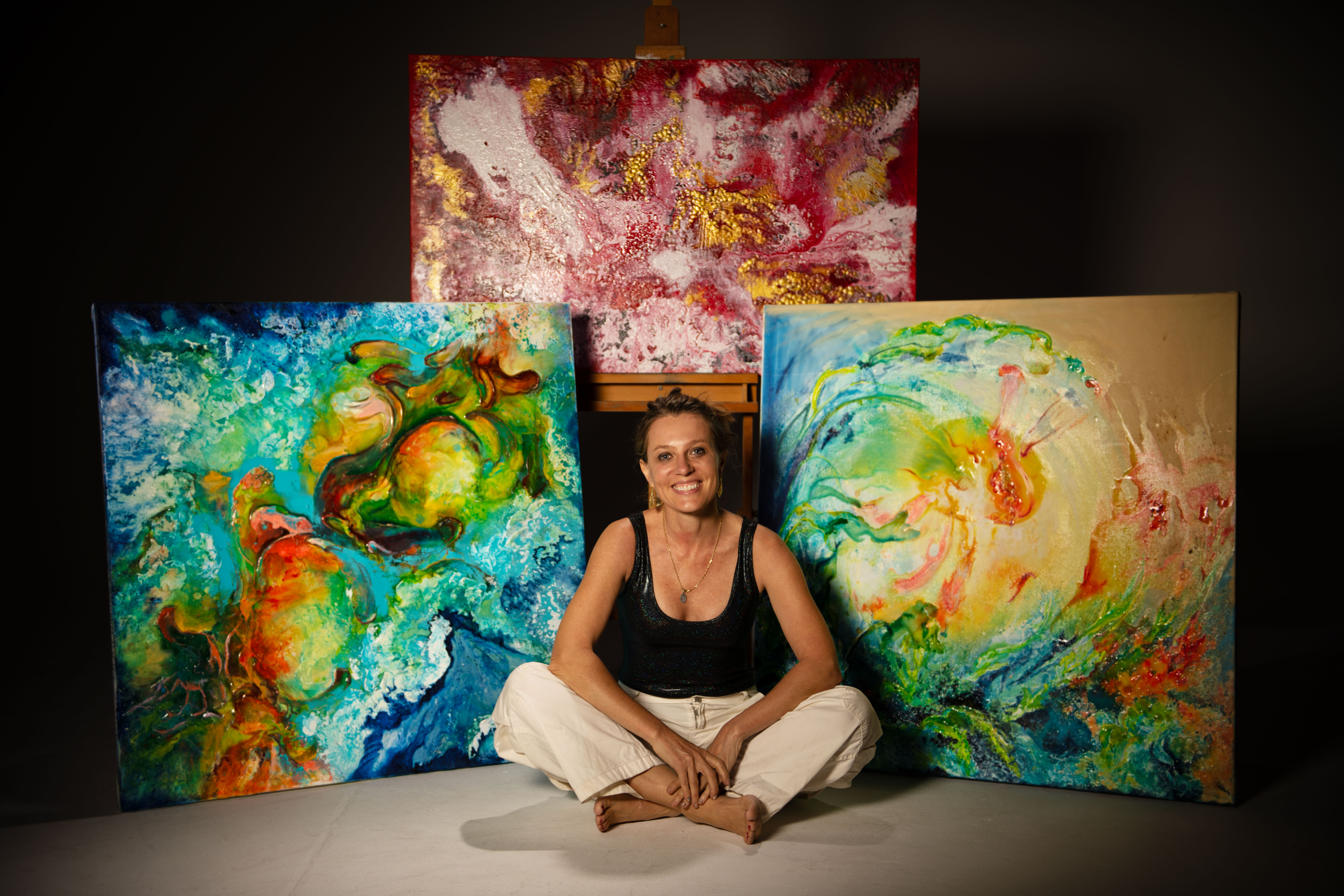 Her signature technique, which she calls "Entropica," reflects her philosophy of embracing chaos as a source of growth. By blending oil paints with water-based mediums, Giovanna allows organic patterns and textures to emerge naturally, celebrating the unpredictability of the creative process.