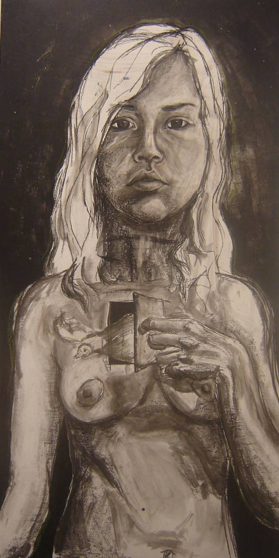 Using the pew as a desk and kneelers as her seat, Jo Lundberg taught herself how to draw portraits during Catholic mass as a child. She never stopped doodling. Jo's often up-cycles pieces of wood (or other re-used items, such as bed sheets) that are rescued from alleys, burn piles, carpenters' detritus, ect. and uses the natural beauty of the wood grain as part of the composition. Often described as "surreal," her work is inspired by the natural world, the sea, Frida Kahlo, human anatomy and the place where psychology and the human condition bisect. Her paintings meanings are often shrouded in symbolism. Jo has shown along the west coast, including Design For Humanity, an art, music and fashion show sponsored by Billabong at Paramount Studios in LA. Her work is in private and public collections, including St. Charles Medical Center in Bend, Oregon.