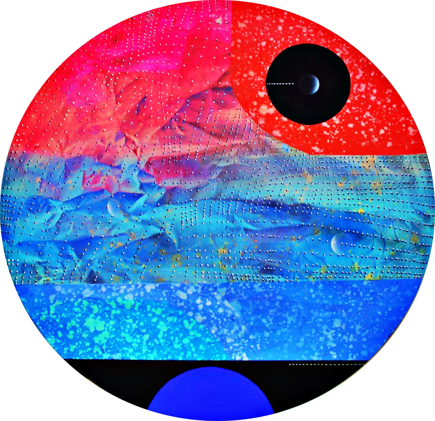 Belmar's works bear testament to the collage of conflict of assimilation and identity that he has experienced as immigrant several times in life. He combines abstract expressionism and traditional folk art to create complex hypnotic worlds. Since the start of his artistic practice, he has been interested in exploring the properties of contemporary materials. “Organic qualities of the acrylics, gouache, and ink mix and move spontaneously on a fixed structure, canvas, plastic, or paper. I play with light, transparencies, and the sculptural qualities of these elements to evoke- Time, Change, and Movement,” he says.