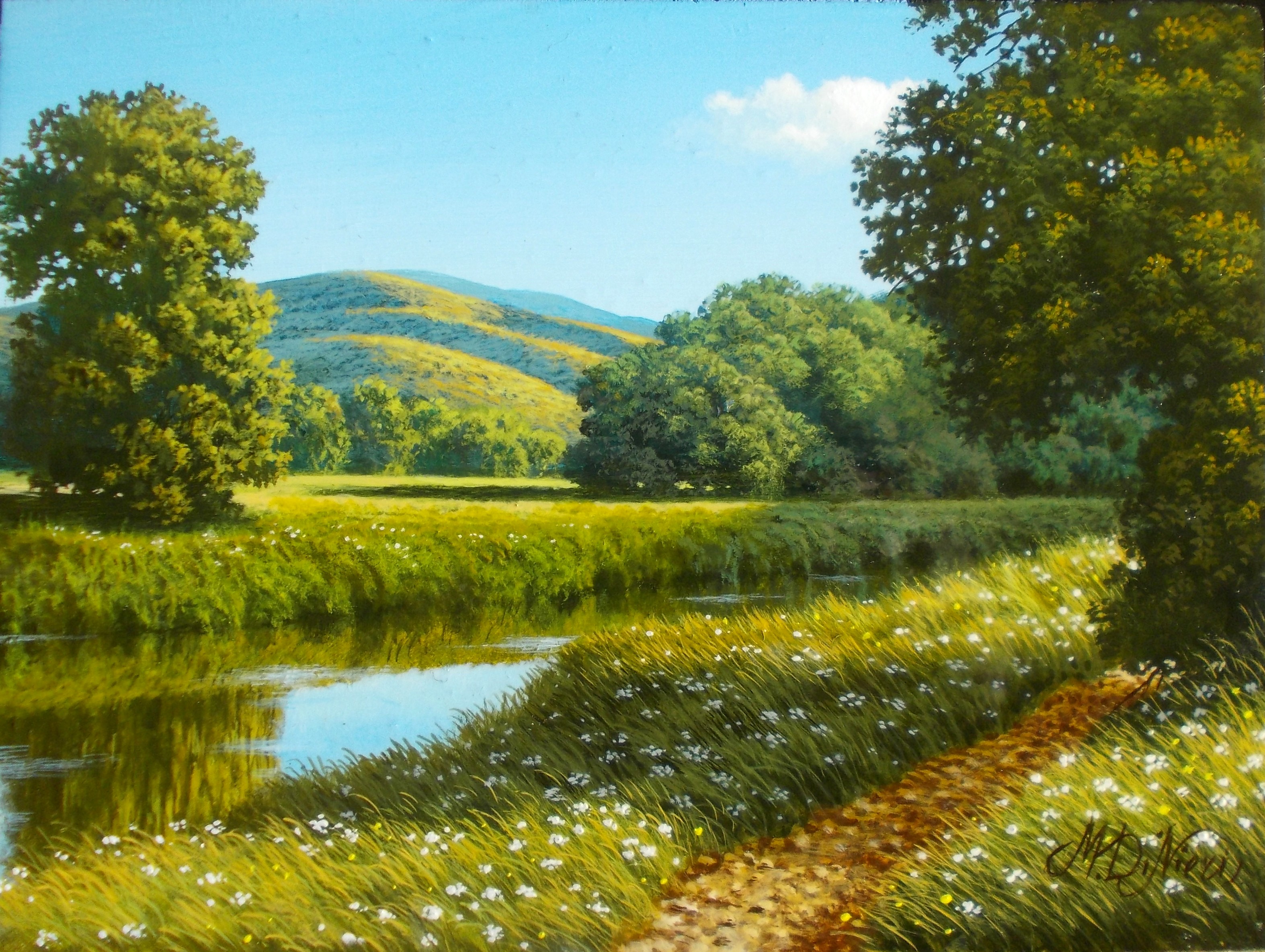 Art critic L. Venturini states, “Admiring the paintings of Marco Di Nieri, one lingers to observe the meadows composed of bristly rows of grass, the truly green shrubs or the leaves on the trees, and one can ascertain how the light filters through nature, giving that sense of pure visual reality that works to break through the immersed rocks in the clear water of the streams or more closely observe the water lilies that dance in the ponds, creating that sense of poetry and of peace, but above all brings out a grand perspective that seems to disappear at the horizon of a blue sky. Marco Di Nieri is a complete artist, a student of many things, and a master of all