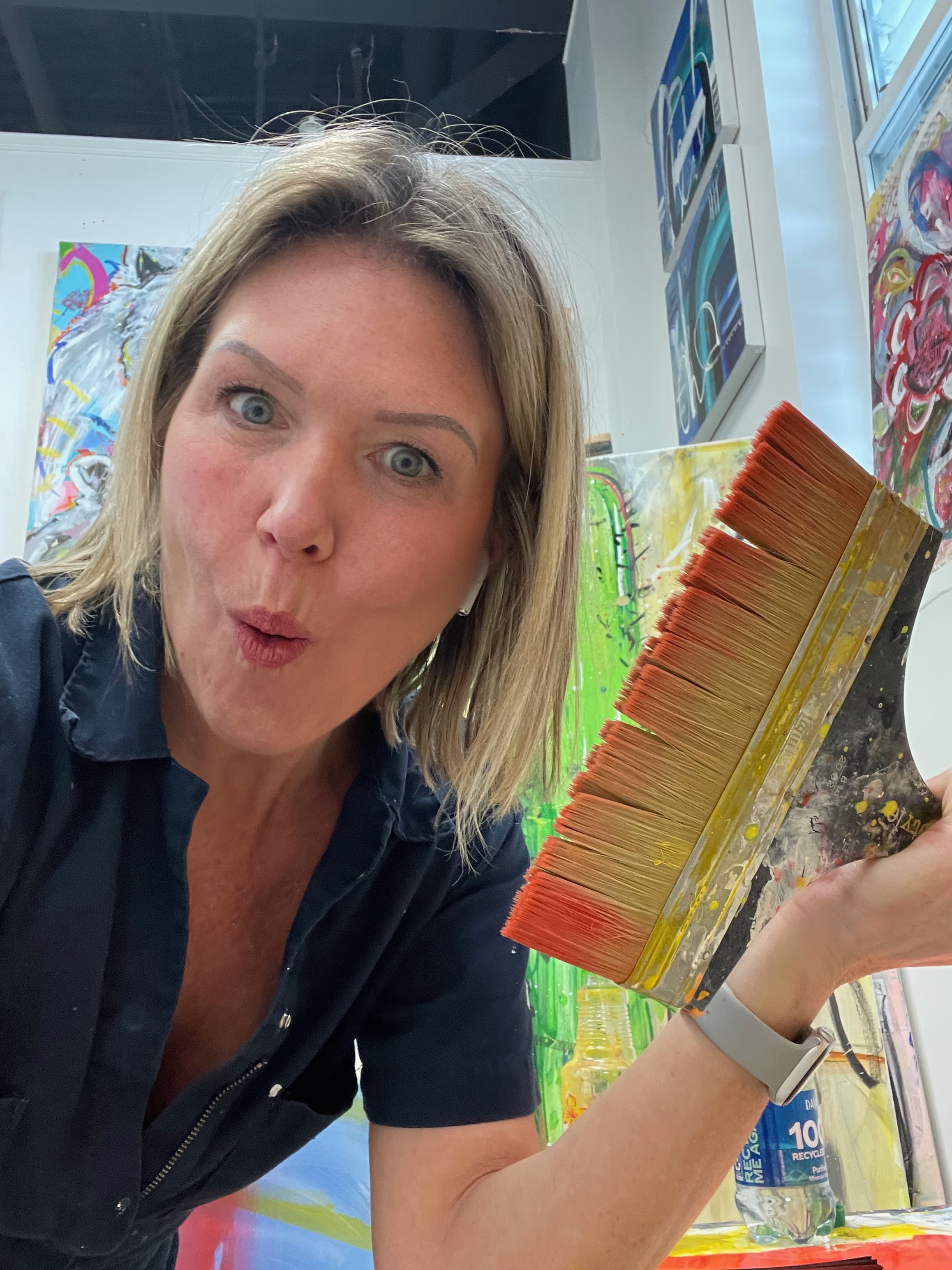 MG Stout, a Philadelphia native and magna cum laude Philosophy graduate from Rosemont College, is an acclaimed artist known for her eclectic style blending Dada, abstract expressionism, and pop art. After residencies at Virginia Commonwealth University and the Workhouse Arts Center, she co-founded Studio 4 in Alexandria, VA, recognized by the Washington Post Express. Her impactful projects include "After the Parade," which raises PTSD awareness among veterans. Now based in Fort Lauderdale, FL, Stout creates custom pet portraits for Uncommon Goods and exhibits at top art fairs like The Other Art Fair. Her vibrant, layered works, part of collections such as the Daxton Hotel Detroit and the National Geo-spatial Intelligence Agency, celebrate the connections between colors, emotions, and people.