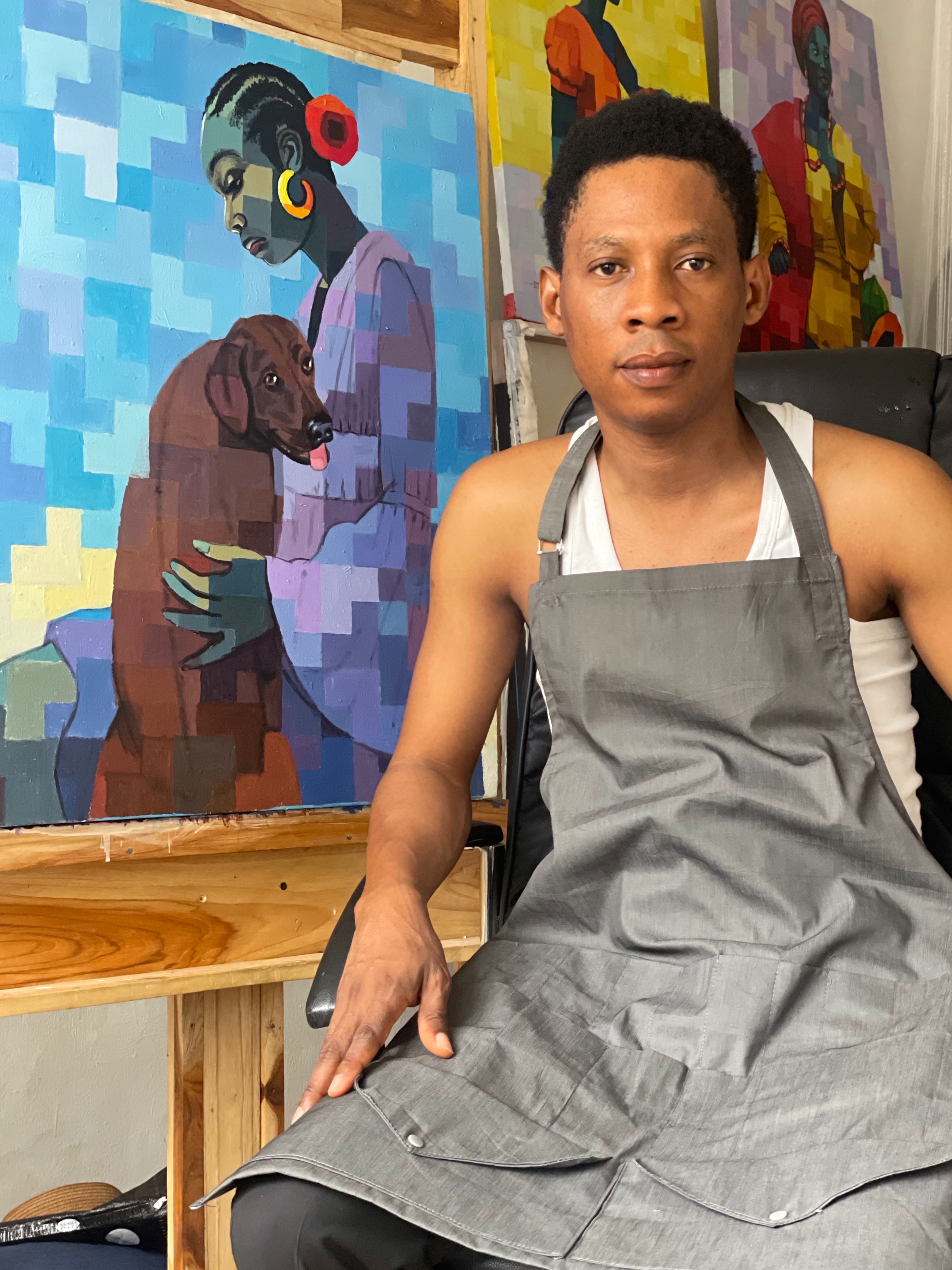 Okunade Olamilekan (b. 1988) is a contemporary Nigerian artist who specializes in painting. He is a full time practicing studio artist residing in Oyo state Nigeria. He was born in Lagos State Nigeria. He graduated in 2017 with Btech (Hon. Fine and Applied Arts) from Ladoke Akintola University, Ogbomoso, Oyo State, Nigeria.His works are strongly influenced and reflect the cultural happenings and situation that affects the black community laying more emphasis on women and their places in the society with the meduim choice of acrylic paint on canvas. He has his core source of inspiration from his immediate environment, gender physiognomy, ups and downs in relation with the struggle of the society.