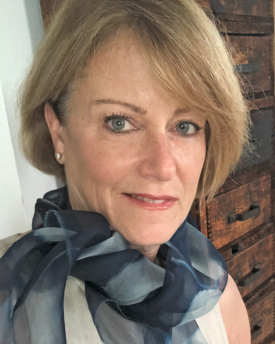 Her art for interiors and products promote the integration of mindful use of cast-off materials. Pamela makes wall art and cards from reclaimed natural fibers via hand dyeing and stitching. Silk scarves and prints are made using non-toxic cyanotype chemicals and materials from nature.