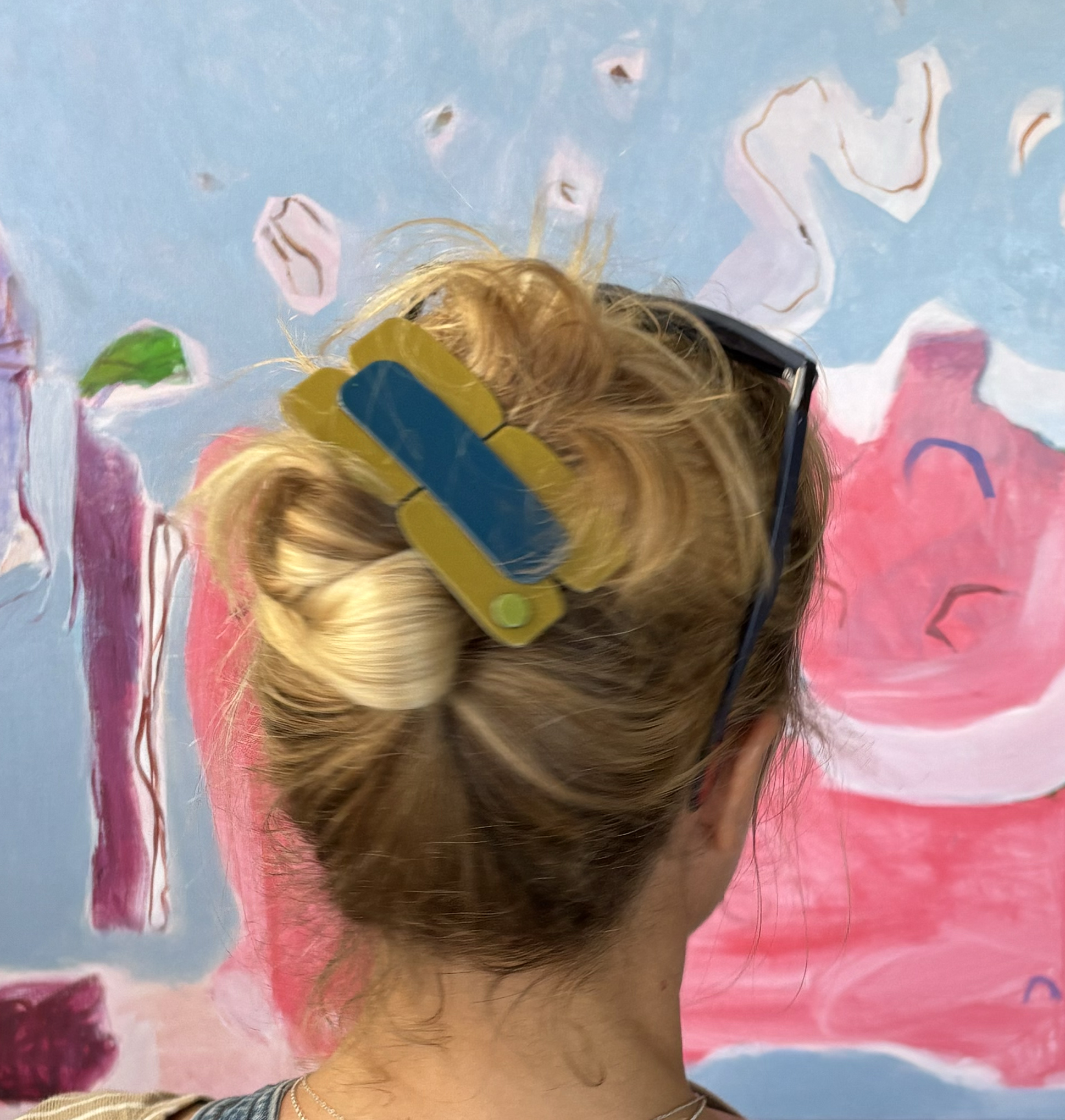 My creative process involves working over initial grounds, often applying several layers to guide the picture towards its final manifestation. As I start, each layer reveals or conceals, telling a story in fragments. These layers invite curiosity of what is hiding behind them. They are often bright, playful or just bursting through, waiting and wanting to be recognised. I think of them as meaningful interventions.