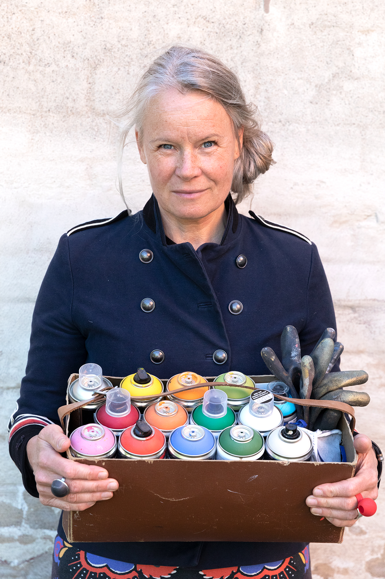 Pia Lilenthal is a contemporary street mix-media artist. She combines stencil work with multiple layers and techniques in the backgrounds. It could be watercolor, acrylic paint, screen printing, collages of stamps. Or a mix of them all. Portraits are a common motif, often women, containing multiple details in the different layers.