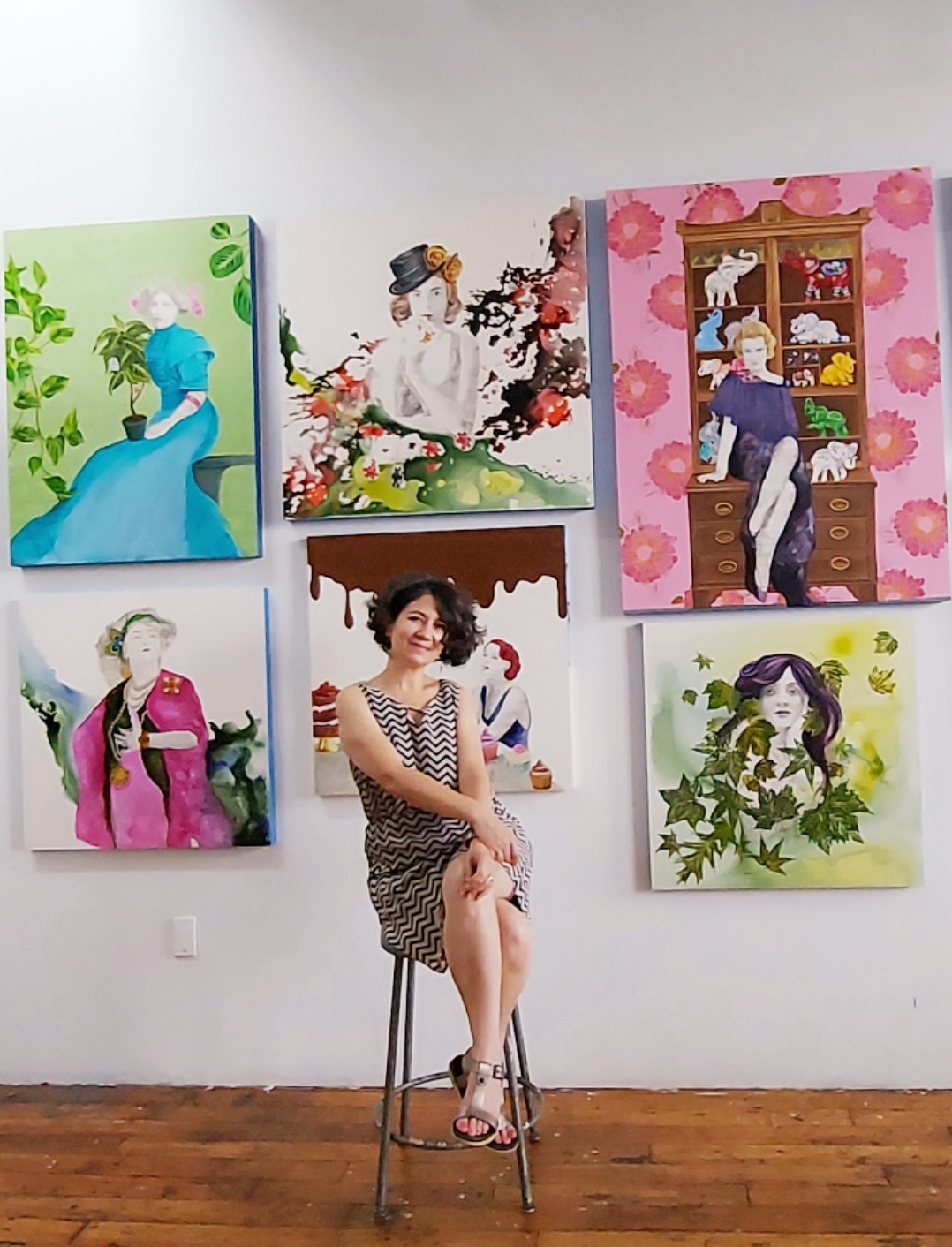 Sandra Mack-Valencia is a figurative painter based in New York. She creates vibrant, empowering works that blend color, pattern, and whimsy. Narrative, and a desire to spread a positive message, is a constant in her paintings. Mack-Valencia draws inspiration from vintage photographs, literature, and the vivid hues from her home town, Medellín, Colombia.