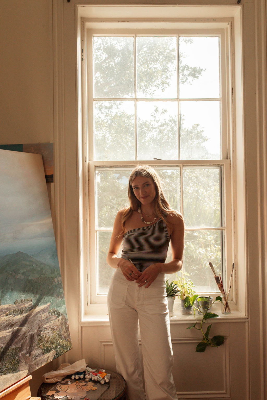Sarah Schools' artwork captures the ever-changing glow of the Carolinas. As both a painter and digital artist, she discovers color in unexpected places, drawn to the dreamlike quality of golden hour, the richness of a cornflower blue shadow, and the delicate light that transforms the landscape when the sun hits just right. She earned her Bachelor of Arts in Graphic Design from Appalachian State University, where she developed a strong foundation in both traditional and digital mediums. Blending realism with impressionism, she creates pieces that evoke joy and vibrancy, immersing viewers in the energy of the world around them. Inspired by the marshlands and waterways, the historic streets of downtown Charleston, and the rolling peaks of the Appalachian Mountains, she finds endless inspiration in the Southeastern landscape, which serves as the heart of her work.