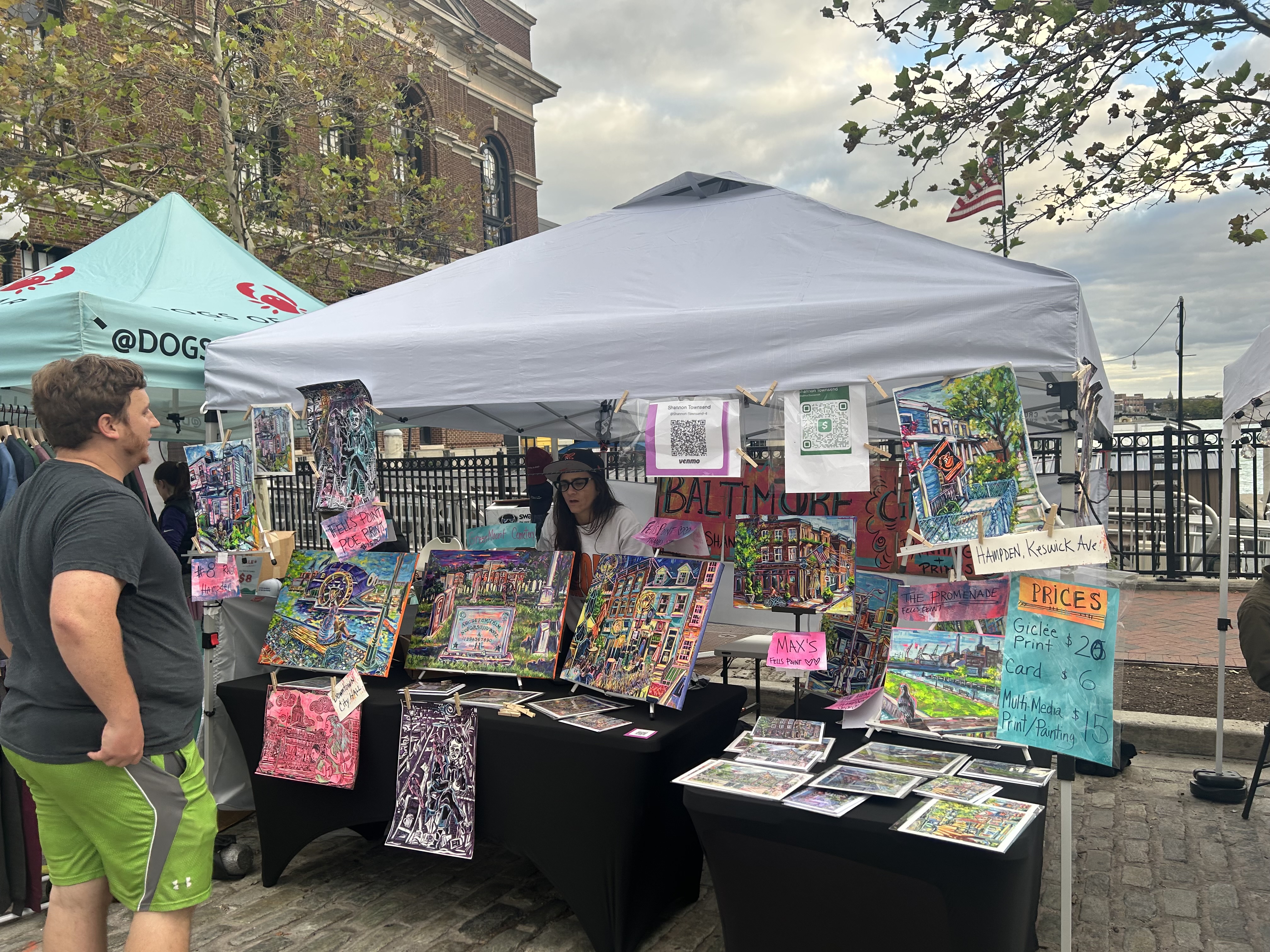 Shannon Townsend is a Baltimore local who captures scenes from across the city with an eye for atmosphere, light, and lived experience. Her paintings reflect Baltimore’s diversity and joy, portraying places not as landmarks alone, but as environments shaped by community, history, and daily ritual. From early-morning walks to bustling nights out, her work invites viewers to slow down and see the city with affection and familiarity.