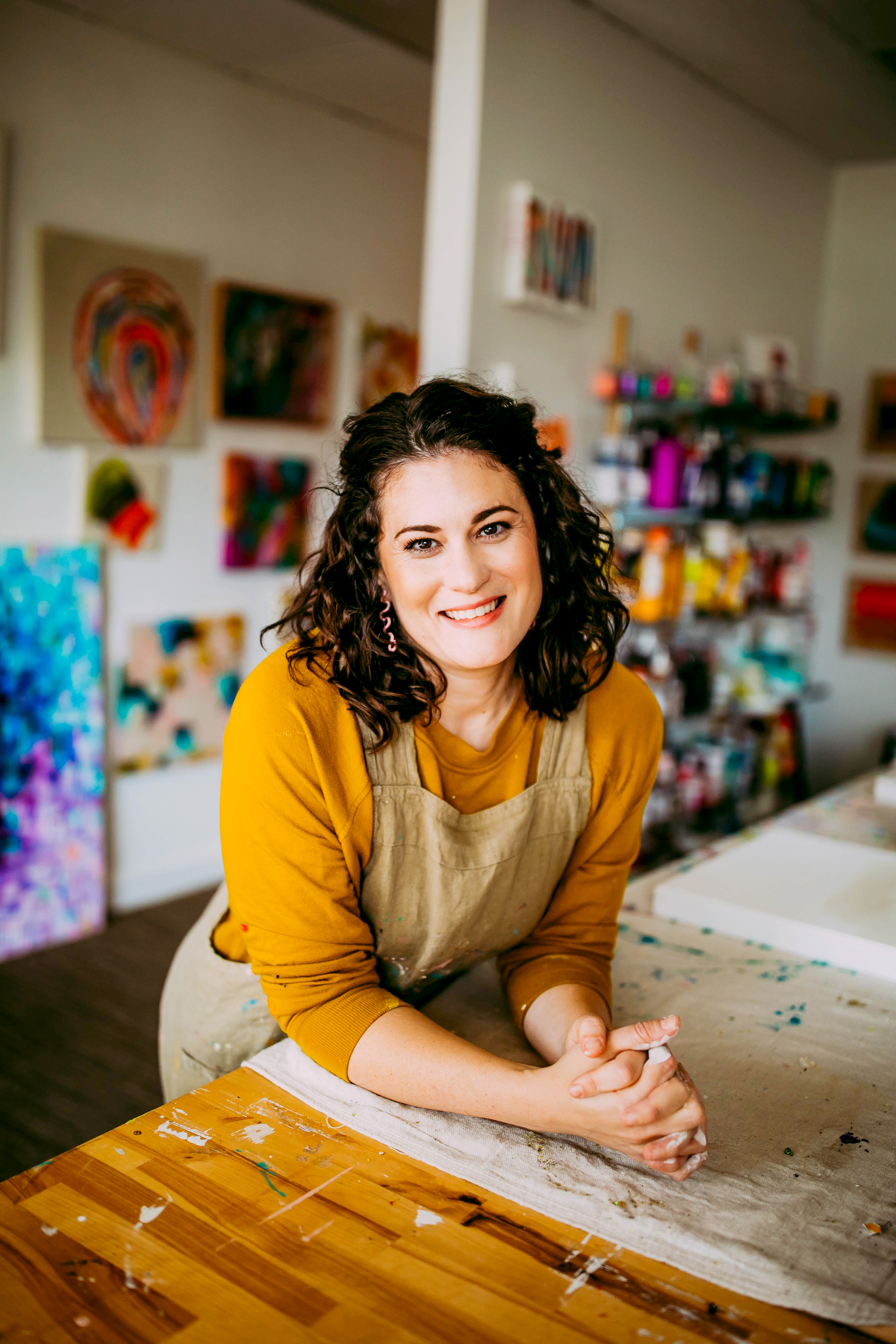 Shiri Phillips is a painter and mixed media artist based in Omaha, Nebraska, known for her vibrant, energetic works that blend painterly technique with a graphic, pixelated style. In addition to her signature impasto paintings, she creates woven works using hand-painted and recycled paper, which she cuts and weaves into layered, dimensional compositions. Phillips earned her BA in Art History from the University of Nebraska at Omaha’s College of Communication, Fine Arts, and Media. Drawing inspiration from the Mediterranean and Southern California landscapes where she spent her childhood, her work is defined by bold color, repetition, and a deep connection to place and memory.