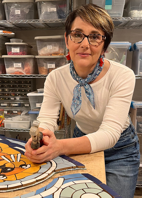 Thematically, her work often draws on nature to inspire personal and community healing, resiliency and pride. As a tenacious, self-taught artist who grew up in a single-wide trailer house in rural Northern Minnesota, her life’s work is creating public art that is accessible to all. She finds the mosaic medium the perfect metaphor to convey transformational possibility and beauty.