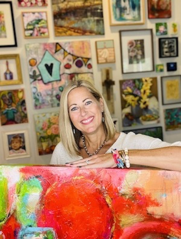 Stacy Spangler is a mixed media artist, born and raised in Fayetteville, Arkansas. While she use mainly acrylics, you will always catch glimpses of a variety of other elements in her artwork as she loves the experimentation process. She enjoy the use of bright color, contrasting values, heavy texture and collage, and uses her hands, brushes and a palette knife to build up multiple layers of paint, papers and acrylic medium, resulting in a heavy distressed texture.Stacy brings a simplistic, light-hearted and whimsical spin on everyday objects; her playful style being greatly influenced by over a decade of teaching art to children.